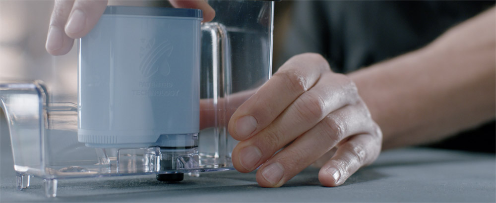 AquaClean-suodattimen kanssa yhteensopivissa espressokeittimissä näyttöön tulee teksti ”Install or Activate AquaClean Filter?” (Asennetaanko tai aktivoidaanko AquaClean-suodatin?). AquaClean-suodatin on aina valmisteltava ennen käyttöönottoa. Ravistele sitä viiden sekunnin ajan, upota se kylmään veteen ylösalaisin ja odota, kunnes siitä ei tule enää ilmakuplia.